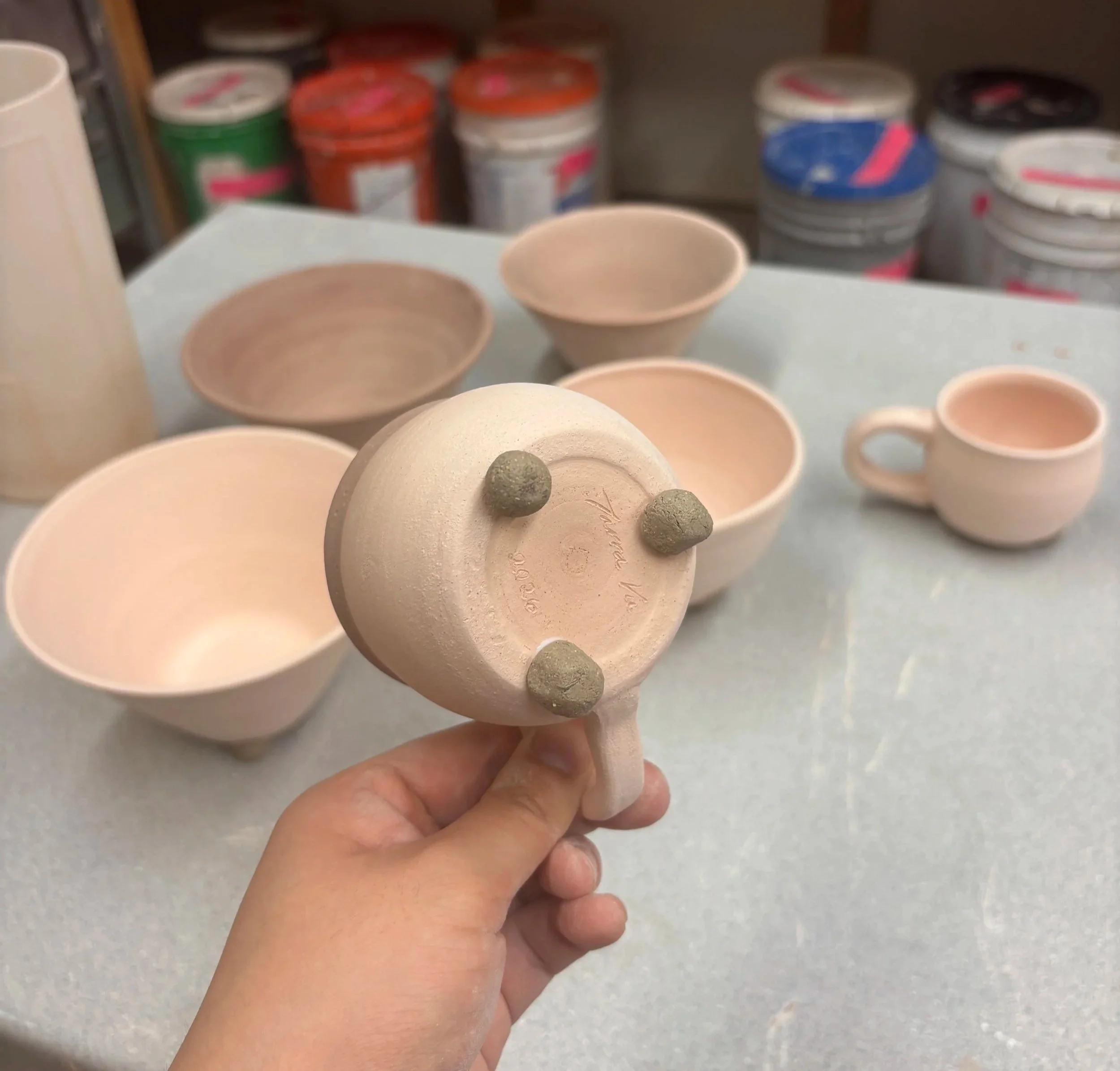 I bisqued my sauce bowls and glazed a couple bowls and small mugs with Malcom Shino on the inside. I'm super duper excited to see how those turn out.