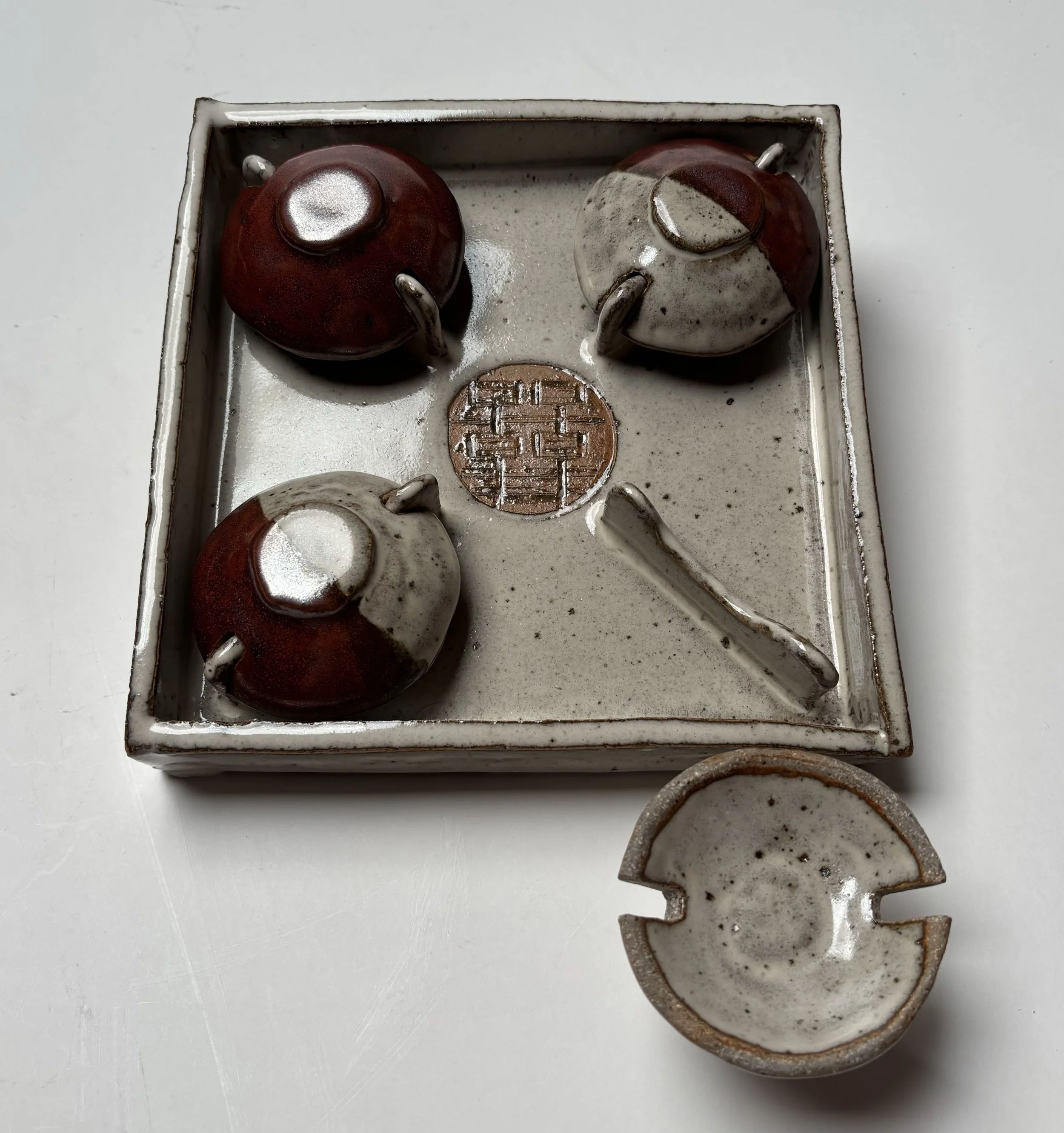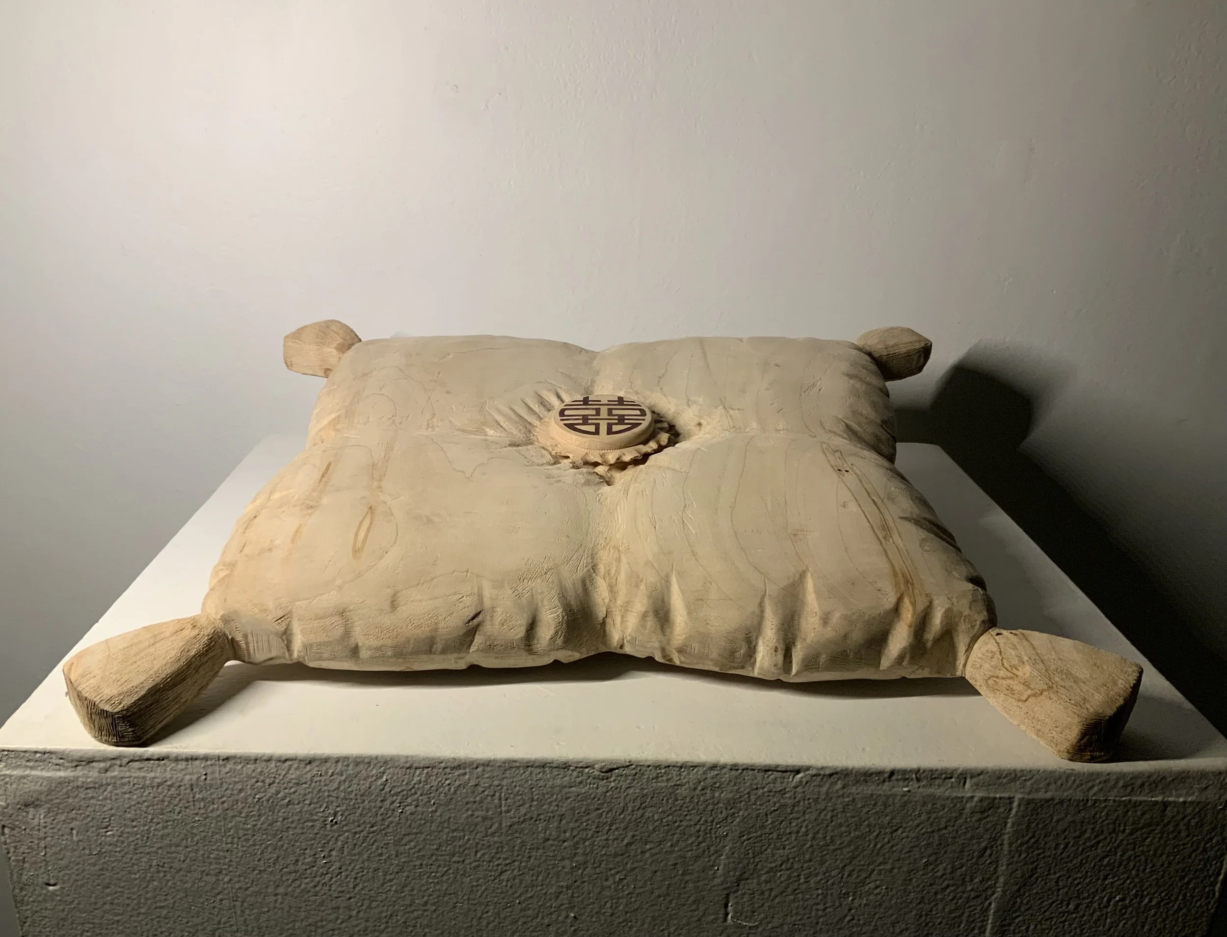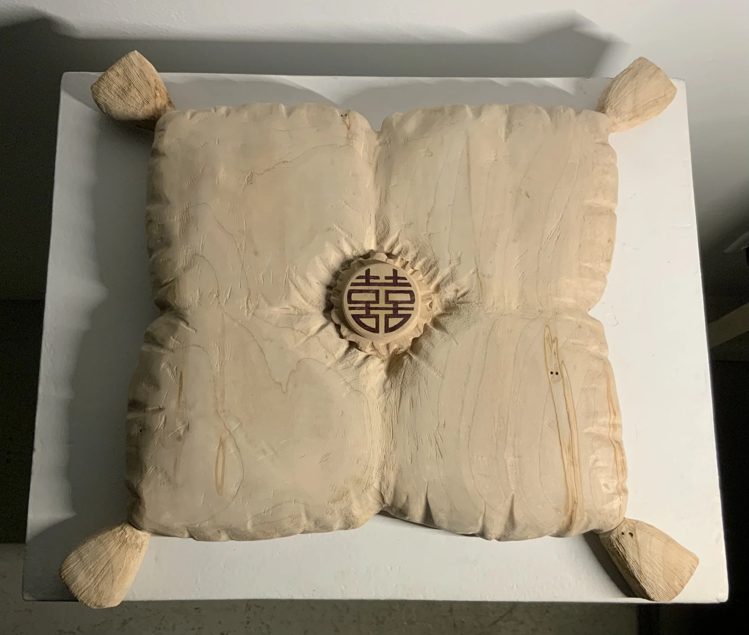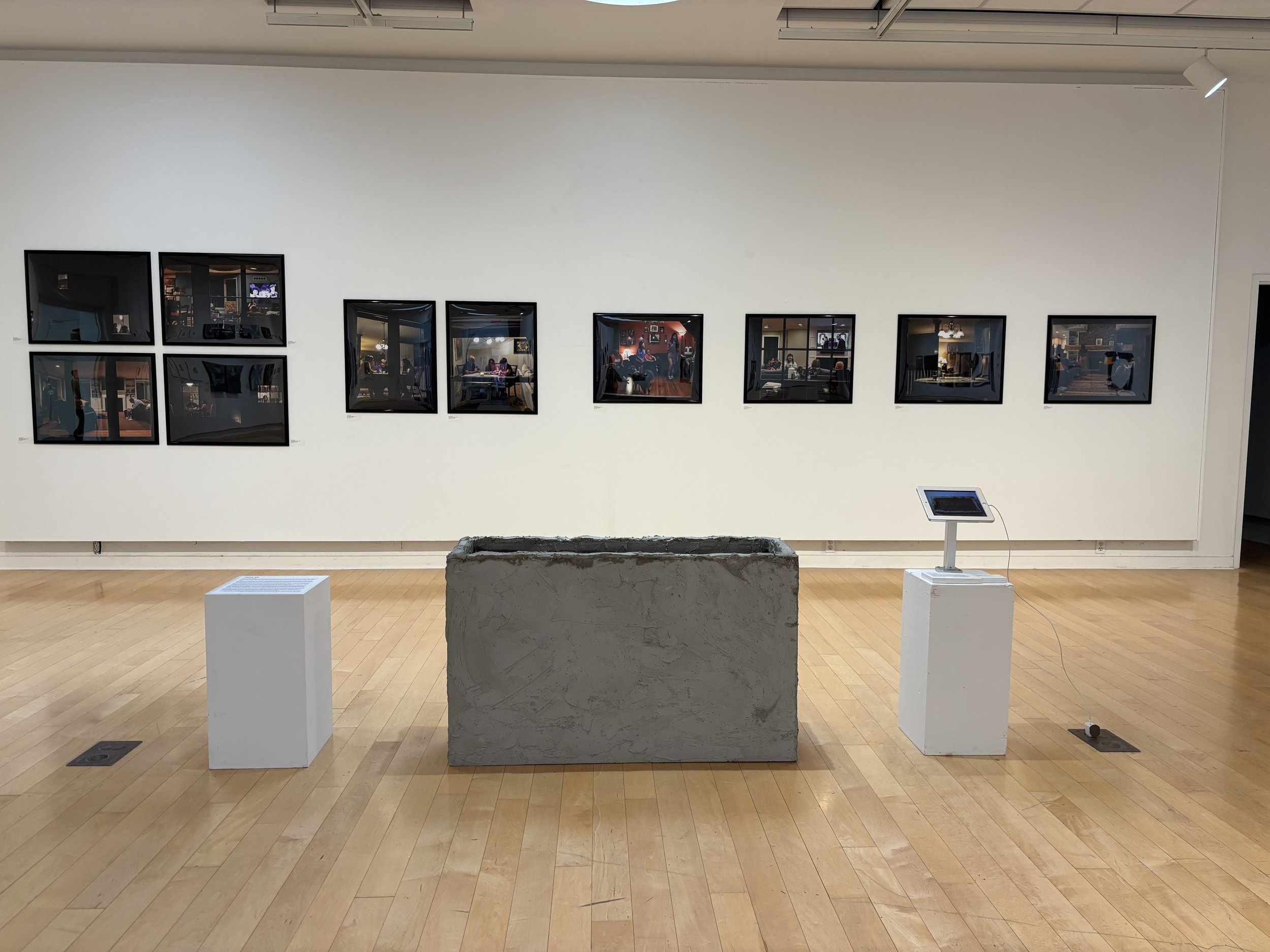 Ongoing works using concrete structures containing unfired clay submerged in water. The clay reads: “Nếu con nhớ bố mẹ , có khi nào bố mẹ nhớ con không?” Using time sensitivity, there’s a brief invitation into hidden queerness.